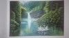 | bellissimo quadro raffigurante 2 cigni e un lago con cascata, colori veri, eseguito da una pittrice russa, cm 110 x 75 h. |