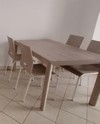 Tavolo e 4 sedie + mobiletto come nuovi (usati in casa vacanze), colore olmo natutrale. Vetrinetta subito disponibile, tavolo e sedie da metą aprile. Solo tavolo + sedie 250 euro, vetrinetta a 100 e. Mandare messaggio whatsapp o telefonare dopo 17:30