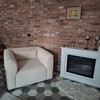Poltrona molto comoda, di morbida ciniglia color crema, marca Sklum. Misure come da foto. Acquisto effettuato a luglio 2025, viene venduta solo per mancanza di spazio.