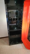 Mobile modulabilein legno laccato nero e rosso, di design vintage.