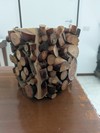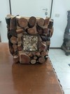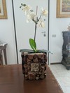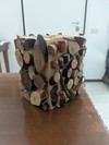 Coprivaso in legno decorato con fette irregolari e quadretto con sassi di mare. Nella foto contiene l' orchidea finta di un noto marchio europeo (non incluso). Pesa 1,5 kg