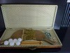 Collezione d'epoca di N° 2 set tennis tavolo entrambi in custodie legno, rispettivamente il primo per tavolo regolamentare con piccola mancanza nella retina come da foto e il secondo per tavolo ridotto. Completi di racchette e palline. Vendo €
