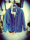 | giaccone a vento in ottime condizioni colore blu interno panna taglia xxl comodo, caldo e leggero, lieve strappo interno manica. |