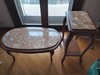 vendo tavolini in noce con ripiano in marmo, uno ovale alto 40 cm, lungo 98 cm e uno alto 78 cm, lungo 46 cm. Vendo a € 80. Contattare con messaggio al numero di cellulare