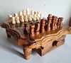 Scacchiera da tavolo vintage in legno realizzata a mano con cassetti ,completa di 32 pezzi . Dimensioni: cm .23x cm . 23 x cm .7 .Vendo € 88. Gradito contatto telefonico.