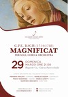 L’opera che sarà presentata è la più famosa del repertorio di Bach figlio: una enorme costruzione di cori e arie solistiche di notevole difficoltà che portano ad immaginare ad una sorta di “gara musicale” che C.P. Emanuel volle lanciare al padre, autore anch’egli del Magnificat BWV 243. Il figlio scrisse il suo Magnificat nel 1749, un anno prima della morte di quel gigante musicale che segnò tutta la storia della musica e non è un caso che per la sua composizione scelse la stessa tonalità usata dal padre, il re maggiore. Sebbene il criterio della difficoltà esecutiva non sia un elemento qualificante nella musica, il Magnificat di Carl Philipp Emanuel è decisamente più complesso di quello paterno: il coro finale è un immenso fugato di 246 battute (circa 20 pagine di partitura) che mette a dura prova il coro e le arie sono costruite con passaggi che richiedono maestria sotto il profilo sia ritmico che melodico. Saranno quattro i solisti che si alterneranno nella scansione dei versetti del cantico mariano: Veronika Kralova, Daniela Giazzon, Lorenzo Sivelli e Angelo Lodetti. Coro e orchestra al completo forniranno l’accompagnamento e il ripieno delle altre parti in una successione di tempi, tonalità e stili diversi che rendono questo compositore un ponte tra lo stile barocco e quello classico, passando per lo stile galante.